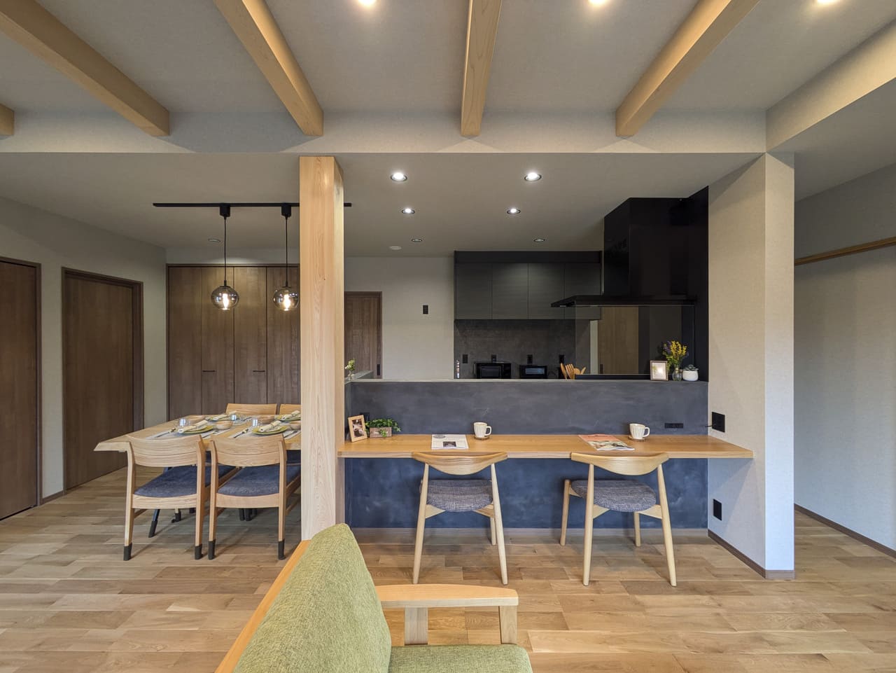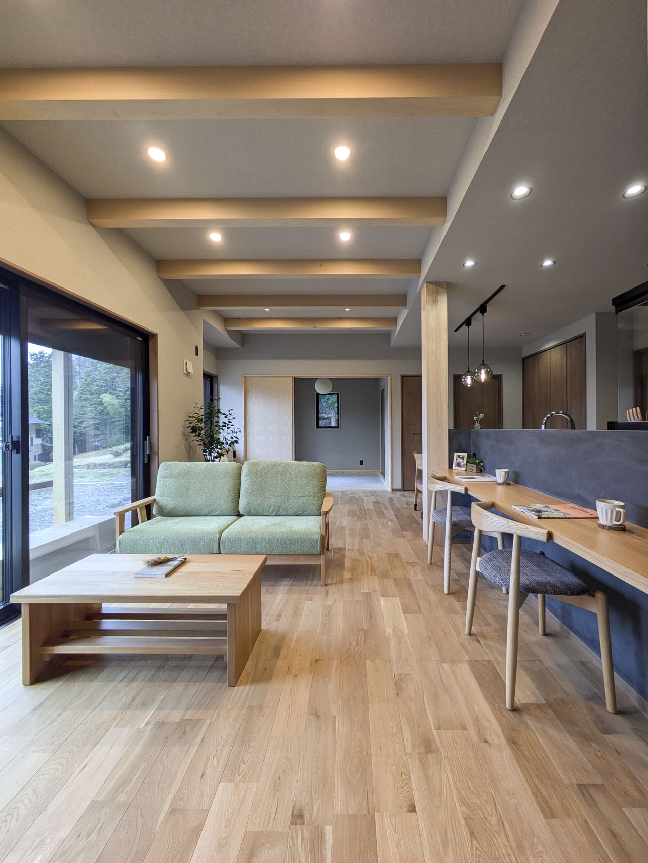 - 家族全員が自然素材の柔らかい温かみに包まれる内装