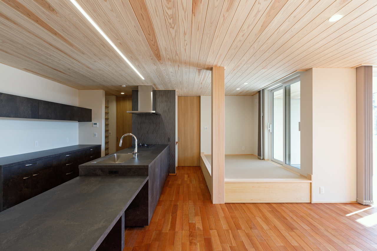 料理や配膳、洗濯までが横並びで完結する家事ラク動線。キッチンのそばには子どもが遊べる小上がりの畳コーナーを設け、家事をしながら見守れる安心感と、自然とお手伝いがしやすい距離感を大切にしました。子育てを楽しく、ラクにする暮らし方をご覧ください。